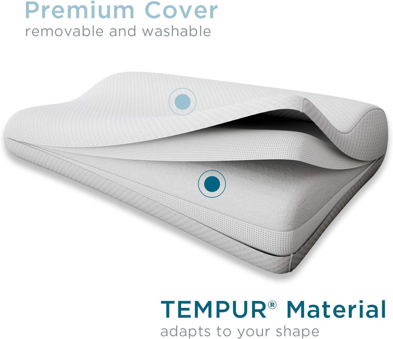Our original ergonomic pillow, designed to provide proper alignment, support, and comfort by following the natural curve of your body. Made with firmer TEMPUR material expertly contoured to help rejuvenate tired neck and shoulder muscles, this pillow provides a therapeutic experience and a deeper night’s rest. Available in three sizes to fit all body types and sleep preferences. Includes removable and machine-washable cover, and 5-year limited .