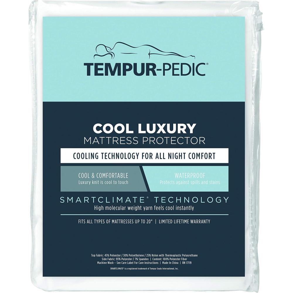 Tempur-Pedic Cool Luxury Fitted Mattress Protector – Cool and Comfortable Luxury Knit – Waterproof to Protect Against Spills and Stains – Machine Washable, Queen Sized, White