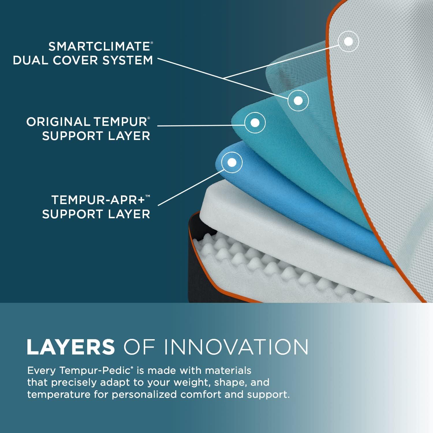13-INCH LUXEADAPT KING MATTRESS: The TEMPUR-LuxeAdapt Soft Mattress is the ultimate TEMPUR experience. Maximum pressure-relieving power with superior motion cancellation..ONE-OF-A-KIND COOLING TECHNOLOGY: The SmartClimate Dual Cover System is next-generation technology. Featuring a zip-off, cool-to-touch outer layer and super-stretch inner panel for convenience and comfort.