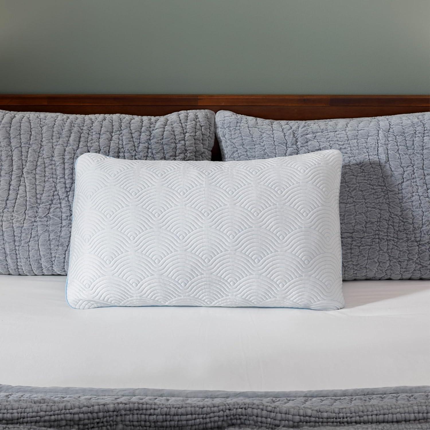 The Tempur-Pedic TEMPUR-Cloud® Adjustable + Cooling Pillow, Queen – 2-Pack features the same personalized experience of the TEMPUR-Cloud® Adjustable pillow, enhanced with innovative cooling fibers that provide cool-to-the-touch comfort all night long. This fully adjustable pillow offers a one-of-a-kind, customizable sleep experience. A lightweight liner and flexible cover allows you to fluff, scrunch, flatten, nest into—or even remove—the fully adjustable TEMPUR-Blend™ to customize the pillow’s shape and support for your personal needs.