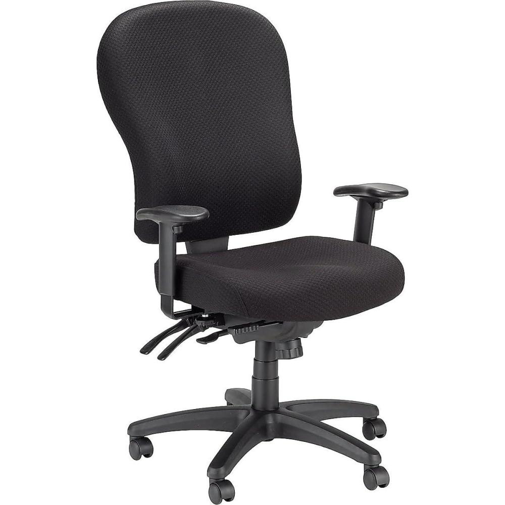 Tempur-Pedic Ergonomic fabric mid-back task chair in olive color has independent back and seat angle adjustments to provide extra support and comfortable seating. Tempur-Pedic Ergonomic fabric mid-back task chair provides height and width adjustable arms, center tilt with lock, forward tilt and tilt tension. Chair features a olive polyester fabric upholstery seat to provide durability and extended comfort.