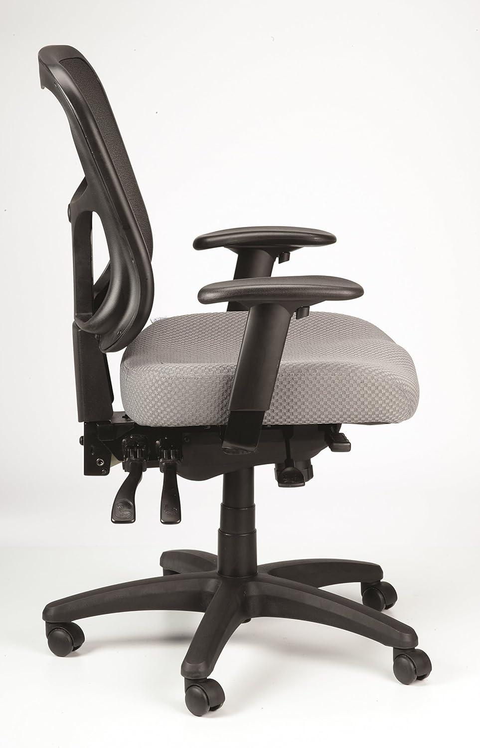 Mid-back design minimizes stress and strain. Width and height adjustable arms allow you to rest your forearms comfortably. Daily usage 8-10 hours. Lifetime Limited Warranty.