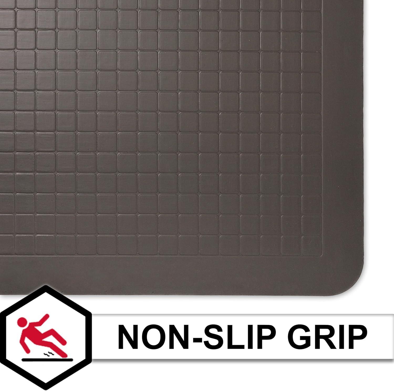 Elevate any area in your home with a Tempur-Pedic Ultra Comfort Anti-Fatigue Mat featuring classic bordered designs in a variety of rich colors with the dependable durability needed for busy spaces. The thick cushioned core features anti-fatigue technology that offers relief from back, leg, and foot discomfort when standing on hard surfaces for long periods of time. These mats are perfect for bringing cushioned comfort underfoot to any room such as the kitchen, laundry room, offices with standing desks, workshops, commercial spaces, and more! Made from Tempur-Pedic approved molded polyurethane foam with an ultra-resilient polyester surface fiber, offering long lasting durability plus superior stain and fade resistance that is ideal for high traffic areas.